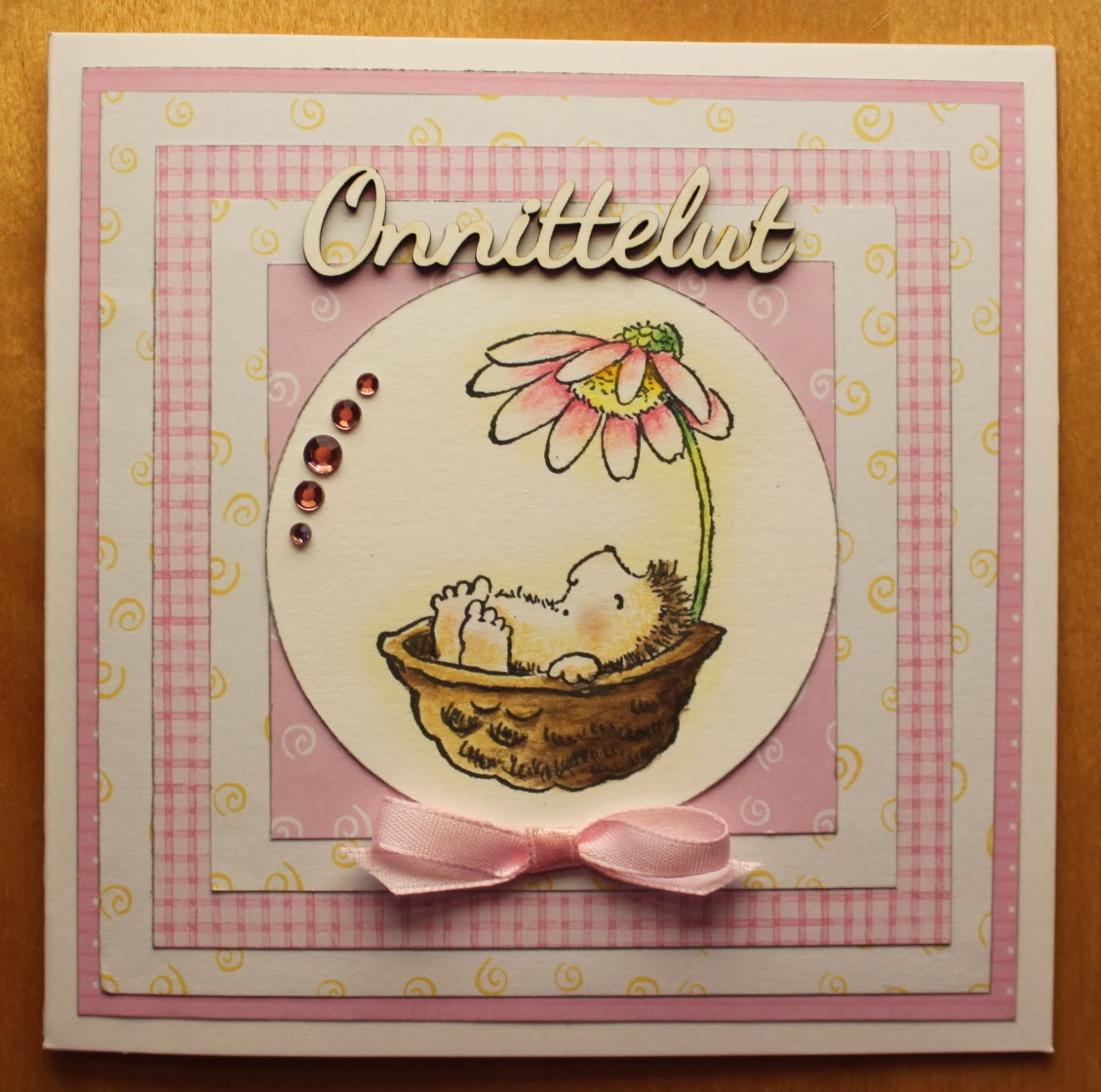 Oma esikoisemme on syntynyt Kätilöopistolla-95. Siellä tehdään ihmeitä joka päivä, ja mielellään lähetän korttejani sinne pienenä tsemppieleenä. Kaikki voittaa: pienet ihmiset vanhempineen saavat ilahduttavan kortin, ja minä vasta ilahdunkin, kun saan hyvän syyn tehdä lisää vauvakortteja. =)
