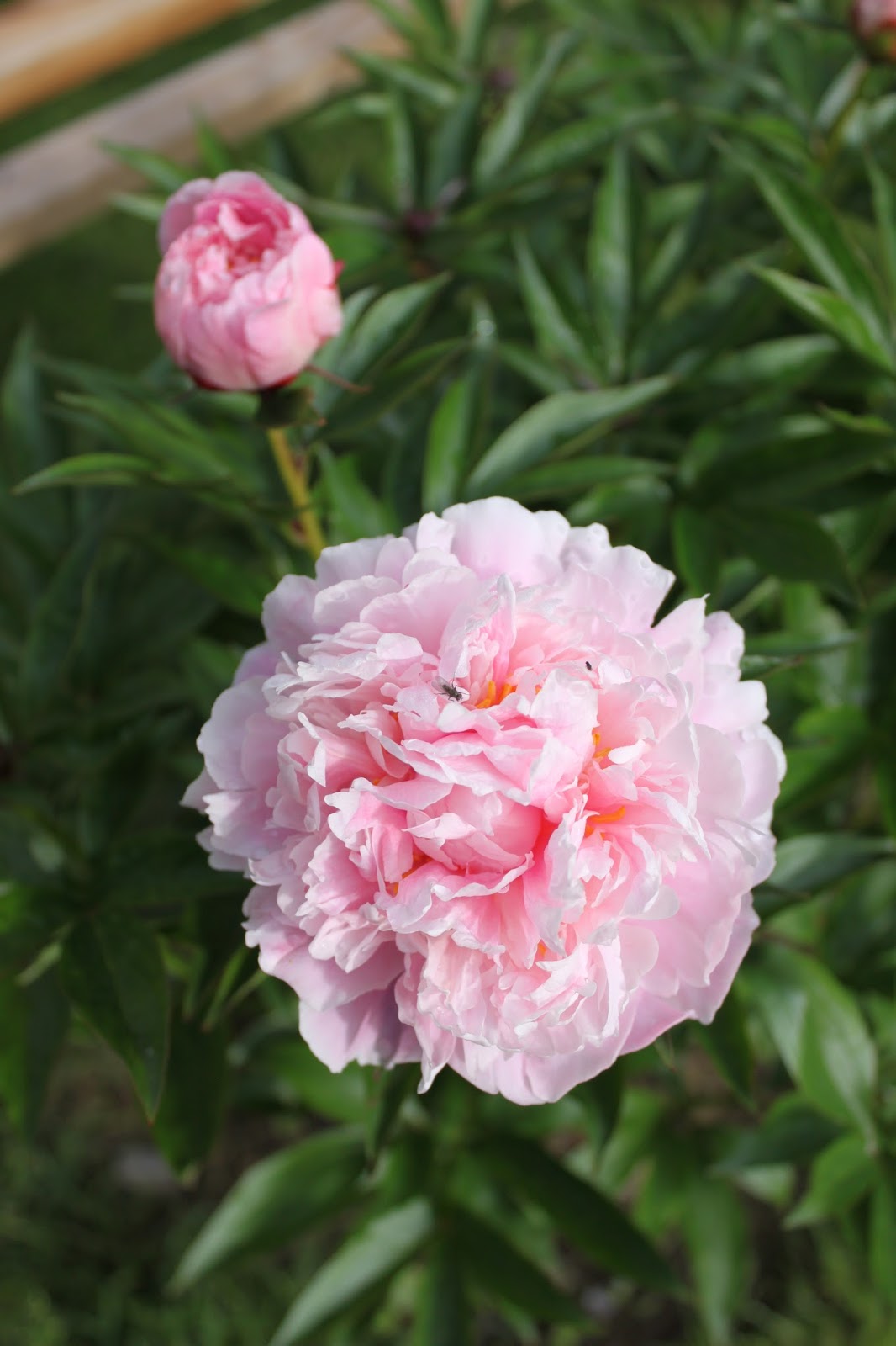 Olen iloinnut näistä pionin kukista viime päivinä ja huokaillut ihastuksesta. Toimme anoppilasta viime syksynä vanhan ja valtavan kokoisen pionin juurakon, ja olen ollut aika skeptinen sen suhteen, alkaako se viihtyä meidän savimaassa, vaikka sitä puutarhamullalla paranneltiinkin. Mutta heti ekana kesänä pioni ilahduttaa meitä näillä upeilla kukillaan! Nyt vaan iskee himo hommata vierelle toinenkin pensas, mielellään valkoinen, kun nämä kukat ovat niin kertakaikkisen hienoja.